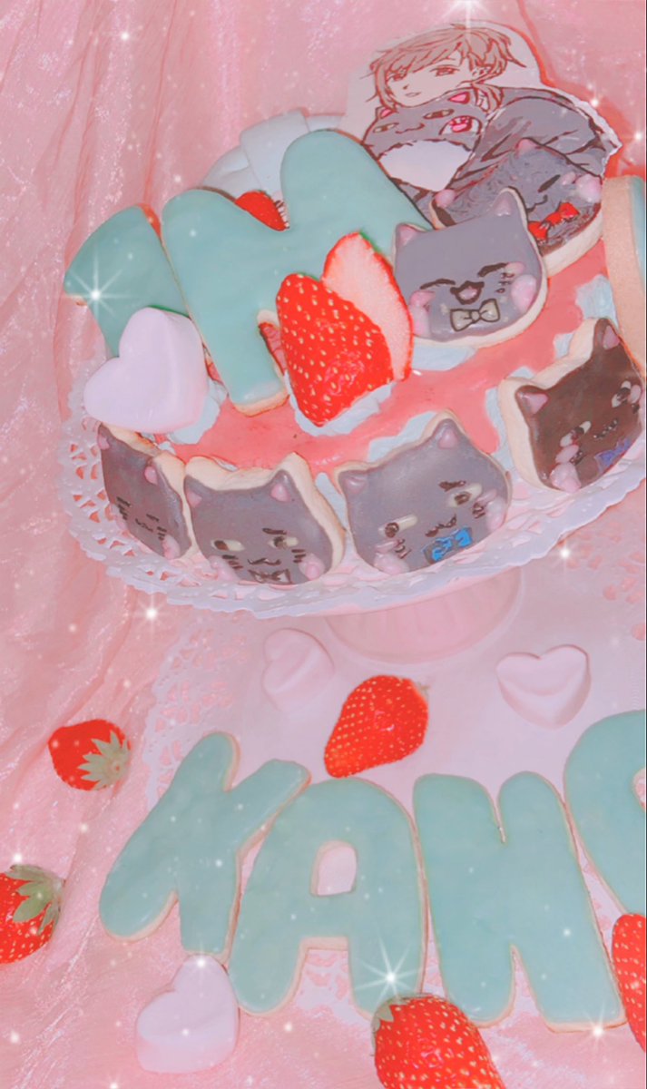 叶くん登録者100万人おめでとうございます!おめでたいこと続きで幸せいっぱいです。 100万人記念にメンバーシップケーキを作ってみました😋 少々不格好ではありますが、頑張って作りました!アイシング難かった…。 チョコプレートのイラストは姉のFAを使用しました。 #叶100万人パレード #かな絵