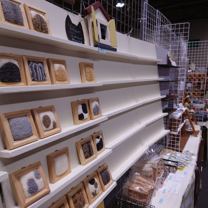 クリマの #猫型丸フレーム はこんな感じに🐱🍀 結局白in白にしてしまった🤣 今日はカルチャー教室だったので先程帰宅。 今から裏布貼りー! 可能なら値段付けまでしてから寝たい😆 #羊毛フェルト #猫フレーム #猫好きさんと繋がりたい #猫の居る暮らし #名古屋 #クリマ #クリエイターズマーケット