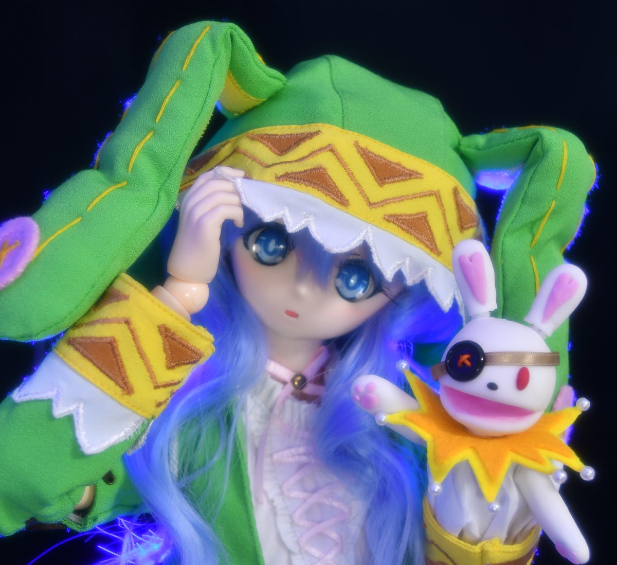 #今夜のドール撮影120分一本勝負 今夜のお題は【 こせいてき 】 過去 ウチにはいっぱいキャラド居るけど、特に個性的なのは四糸乃かな? 特によしのんは可動ギミックや肉球内部に磁石埋め込み保持ギミックを入れつつかなり可愛く作れたと思う♪ #デート・ア・ライブ #date_a_live #四糸乃