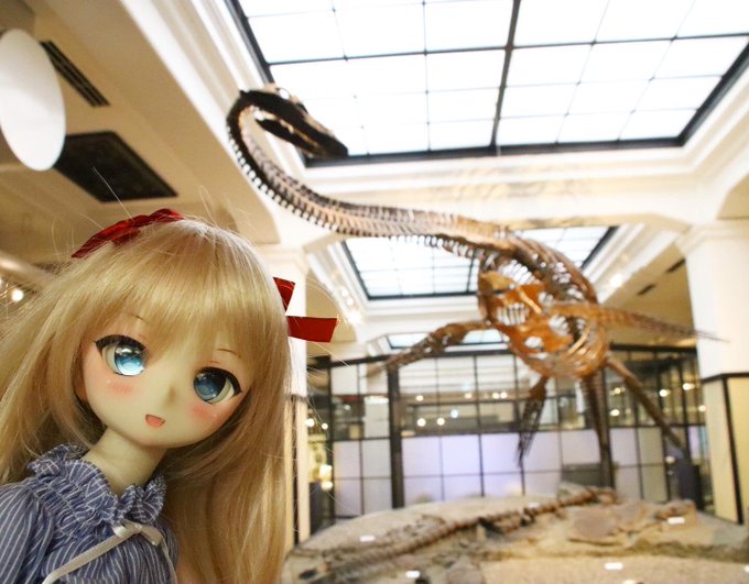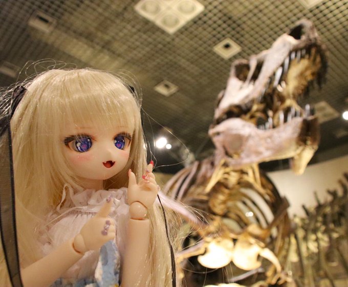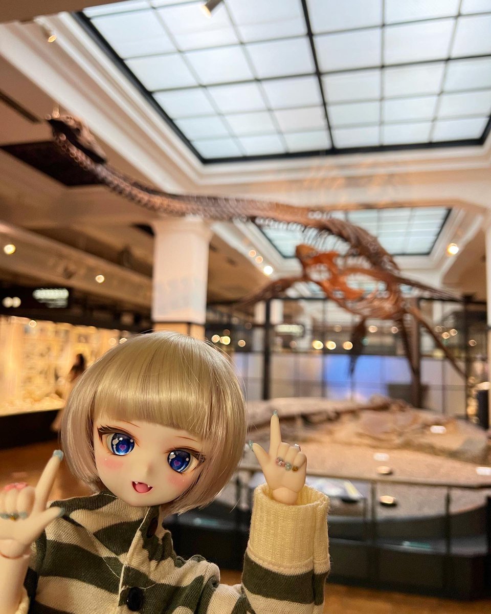 娘達は巨大な肉食の恐竜の化石を見つけました🦖👀✨凶暴そうな見た目がとても怖そうですが、花音はとても気に入ったようです😆✨ #もこもかっこ #THユカリnail #MDDはいいぞ #p_house #missantroop #国立科学博物館 #化石 #恐竜