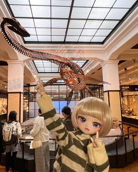 鈴音は恐竜やマンモスの化石を発見しました!巨大な骨格を見て、驚きと感動で目をウルウルさせています😆✨🦕✨ #もこもかっこ #THユカリnail #MDDはいいぞ #国立科学博物館 #恐竜 #化石 #ジュラシックパーク #マンモス