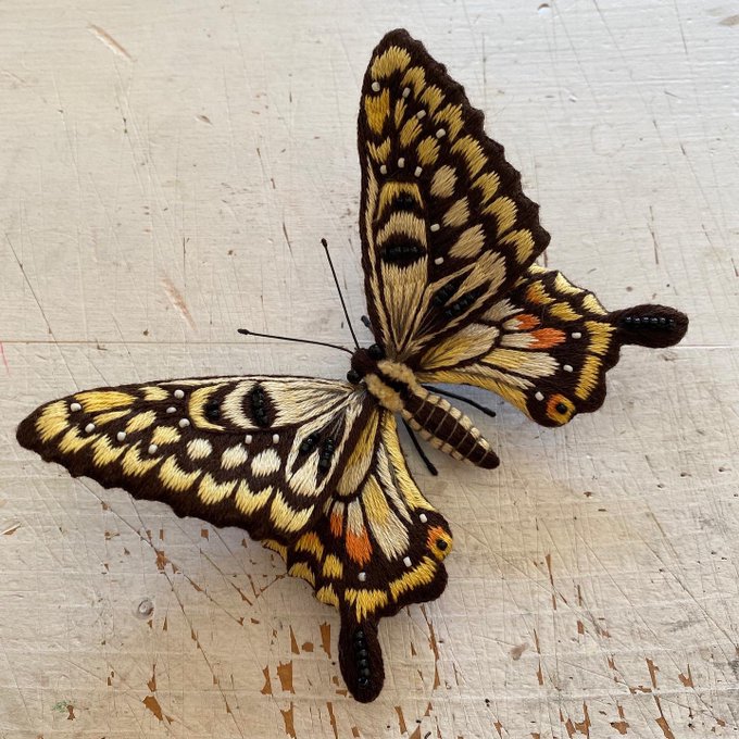 #夏の創作クラスタフォロー祭り くるみボタンの丸みを活かした刺繍作品を制作しています😊 今日も穏やかな1日となりますように🍀 🪡 minne.com/@amstitch #刺繍 #フェイクフード #ハンドメイド
