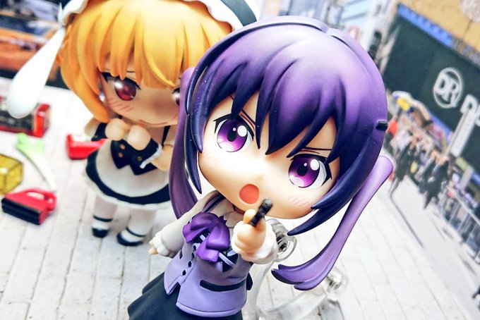 #深夜のねんどろ撮影60分一本勝負 2/2【ねんどろいどのかみ】(遅刻した❗) #夜のフィギュア撮影会 2/2お題 『ツイン』(遅刻) #ごちうさ #天々座理世 #ツインテールの日 ツインテールの日ということで、リゼちゃんを連れて横浜さんぽしました☺️