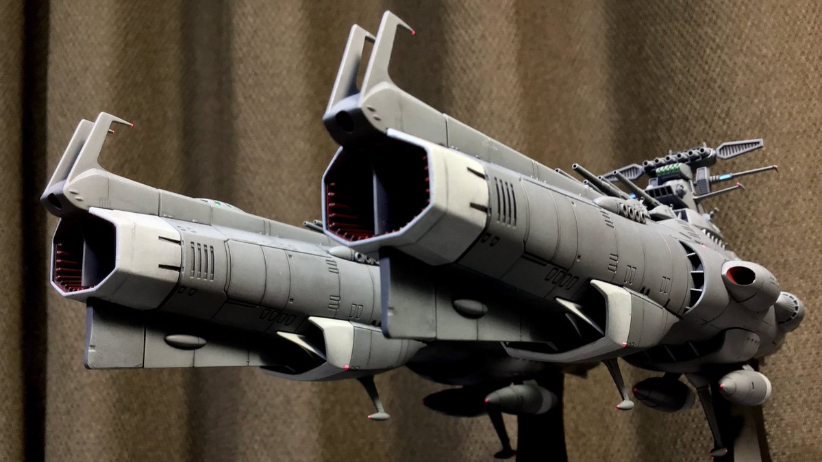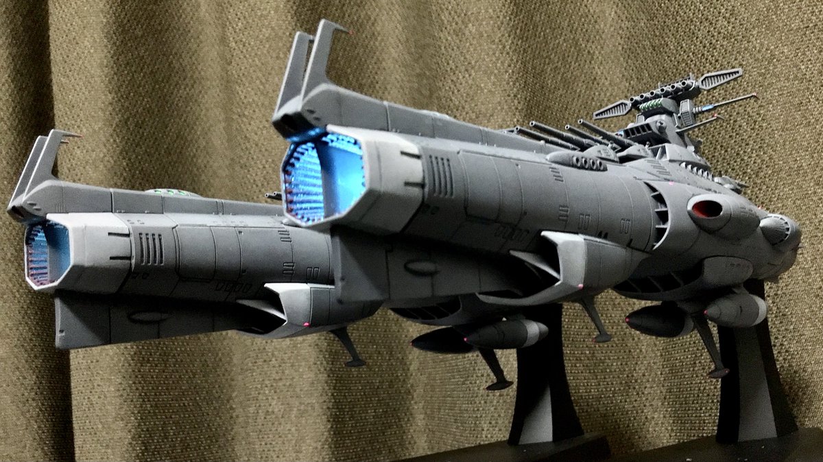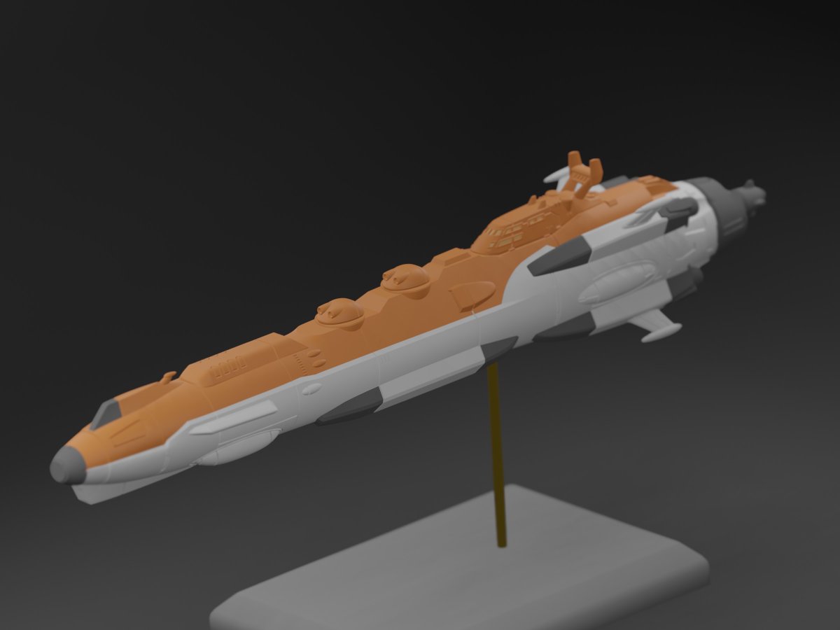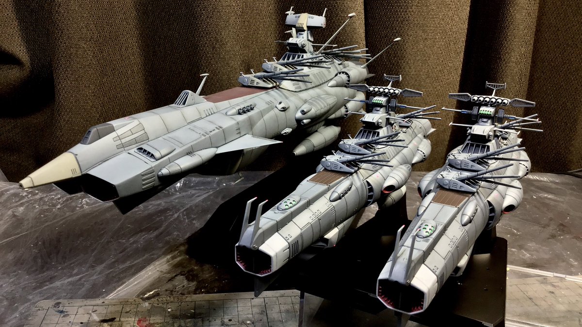 #宇宙戦艦ヤマト の #巡洋艦 完成しました。#Fusion360 でモデリング、#Satrun2 でSK水洗いレジンでの印刷です。全パーツ接着無しで組み上がります。1隻は設定に似たカラー、もう1隻は無人艦隊カラーをイメージして塗ってみました。(続く) twitter.com/i/web/status/1…