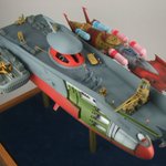 1/350【ヤマト奮戦ス】 胴体部分をカットモデルに。 全砲門をあらゆる方向に向け、今まさに戦闘に突入する場面をイメージ。 前後の断面は主砲下のターレット部や、艦載機格納庫などを妄想で製作。 まだ2199のターレットリングの設定が未発表の、2010年作品。 #宇宙戦艦ヤマト立体・イラスト作品集