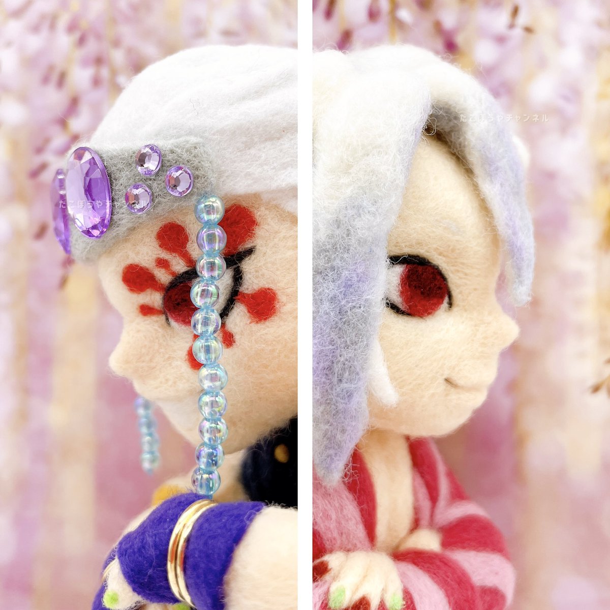 #10月31日は宇髄天元の誕生日 できたーー!!🥹 かっこいいすっぴんの宇髄さんと、 かっこいいド派手な宇髄さん完成しました!🎇💪🏻💪🏻 宇髄さんお誕生日おめでとう🎂🎊🎁🎉💎✨ #鬼滅の刃 #宇髄天元誕生祭2022 #羊毛フェルト #宇髄天元
