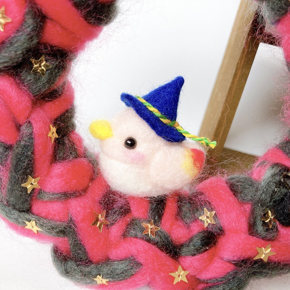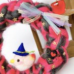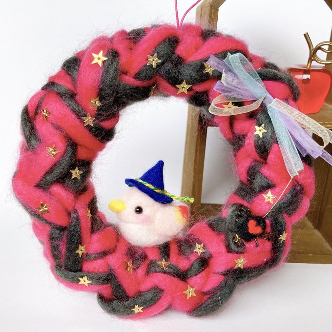 SALE 小鳥の巣ごもりリース ハロウィンの森 ピンク×ダークグレー(鳥ピンク) 毛糸リース(羊毛フェルト)|ハンドメイド、クリエイター作品のマーケットプレイス Creema creema.jp/item/12383089/… @Creema_jpより #Creema #creemaで販売中 #小鳥 #羊毛フェルト #ハロウィン #ハロウィンリース