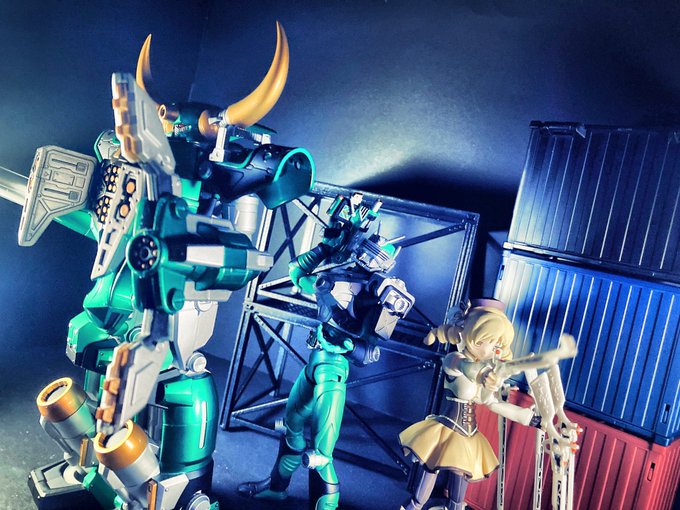 #夜のフィギュア撮影会 テーマ【防】 マミ「攻撃は...最大の防御」 北岡「ようは反撃できないほど蜂の巣にすれば良いんでしょ?」 飛び交う弾丸、響く悲鳴を聞きながら 二人は微笑を浮かべ、目線を交わした #特ヲタの日常 #ブンドド #オモ写 #仮面ライダーゾルダ #巴マミ