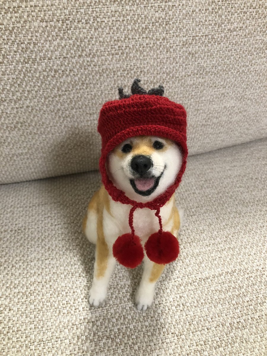 【新作】 昨日の後ろ姿はこの子♡ まゆ柴犬「一気に寒くなったのでふわふわのあったかい帽子を作ってもらいました」 #羊毛フェルト #冬の装い #プードルファー #柴犬 #帽子 #ふわふわ #犬好きさんと繋がりたい #ハンドメイド好きな人と繋がりたい