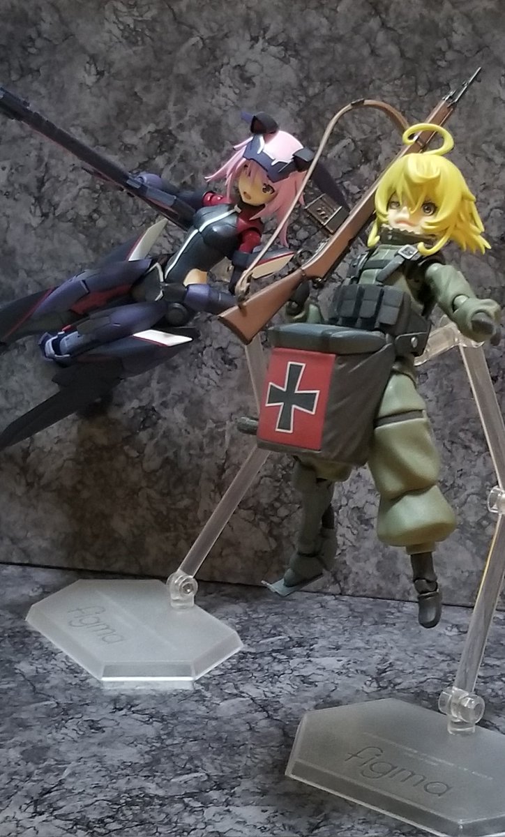 #夜のフィギュア撮影会 お題『頭』 ターニャ「相手は雑魚だが、私が先頭に立とうか。」 夜露「ターニャちゃん、気を付けてッス❗」 #アリスギア #アリス・ギア・アイギス #アリスギアアイギス #幼女戦記 #figma写真部 #濁酒丼劇場