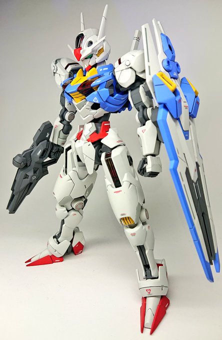 エアリアル完成‼️ プロポーション変更して、その他 目立たないけどディテールUPと塗装の色分け、デカールはネットの資料を参考に貼りました。 作業箇所は後で投稿しようかなと思ってます。 #ガンプラ #ガンプラ好きと繋がりたい #ガンプラの画像貼るとRTされると聞いて #エアリアル #彗星の魔女