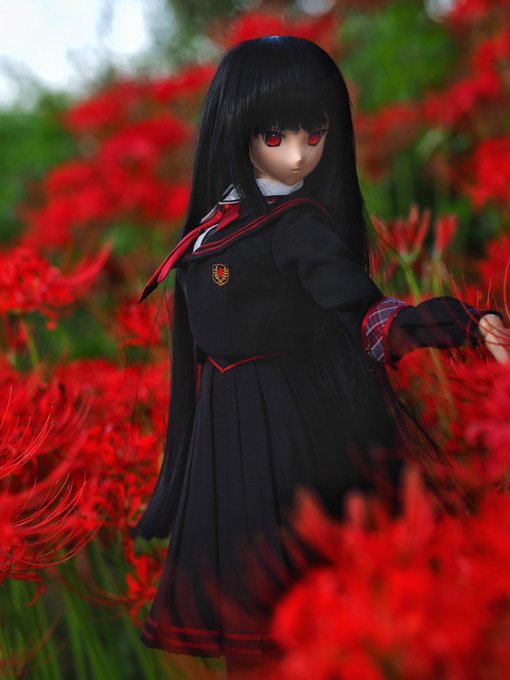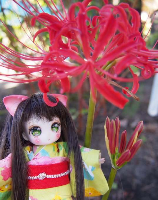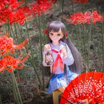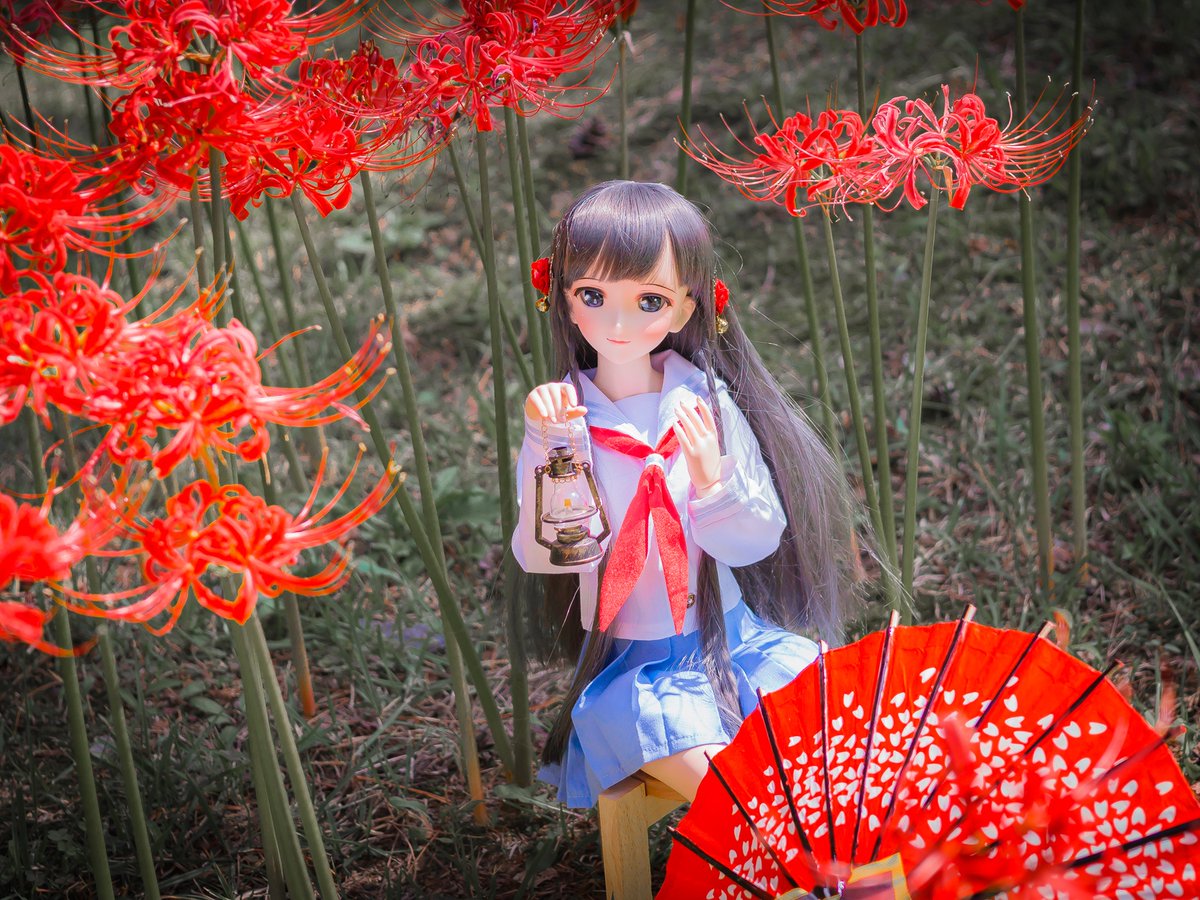 #幽谷霧子「ようこそ…夕刻に染まる 『朱の世界』へ…!」 #ノードール・ノーライフ #今夜のドール撮影120分一本勝負 #うちのこに癒され24時間 #深夜のドール撮影素敵文1440分1本勝負 #シャニマスドール部 #彼岸花