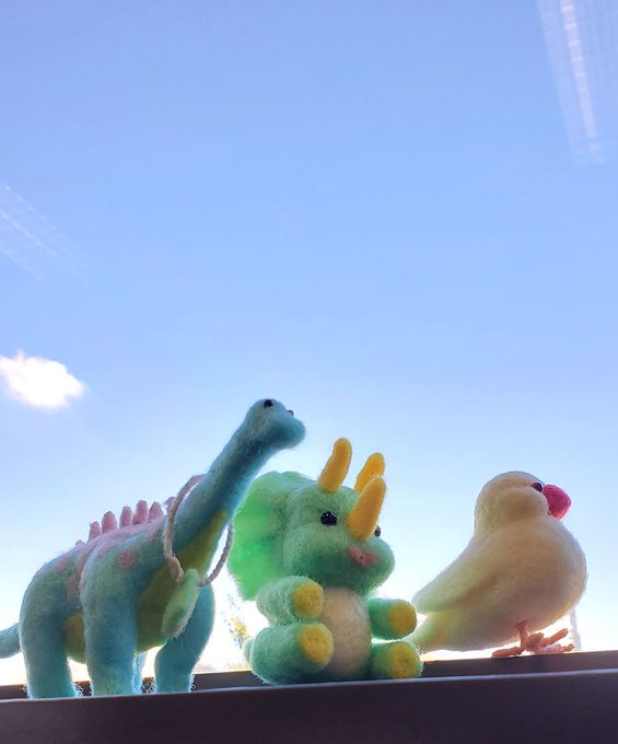 そうこうしている内に、今日もお疲れ様でした~🦕 明日は、Twitter漫画更新の日です📣 お楽しみに~😊🌈 #トリトリと #恐竜ライフを楽しむ毎日 #企業公式ぬい撮り部 #羊毛フェルト #写真 #写真好きな人と繫がりたい #キャラクター #character #企業公式がお疲れ様を言い合う #空のある風景