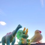 おはようございま~す🌞 って、みんなの後ろに何かが近づいてきているよ~~~😲😲😲💦 もしかして新たな「ぬいキャラ」再び❓❓❓💦 #トリトリと #恐竜ライフを楽しむ毎日 #企業公式ぬい撮り部 #羊毛フェルト #写真 #写真好きな人と繫がりたい #キャラクター #character #triceratops