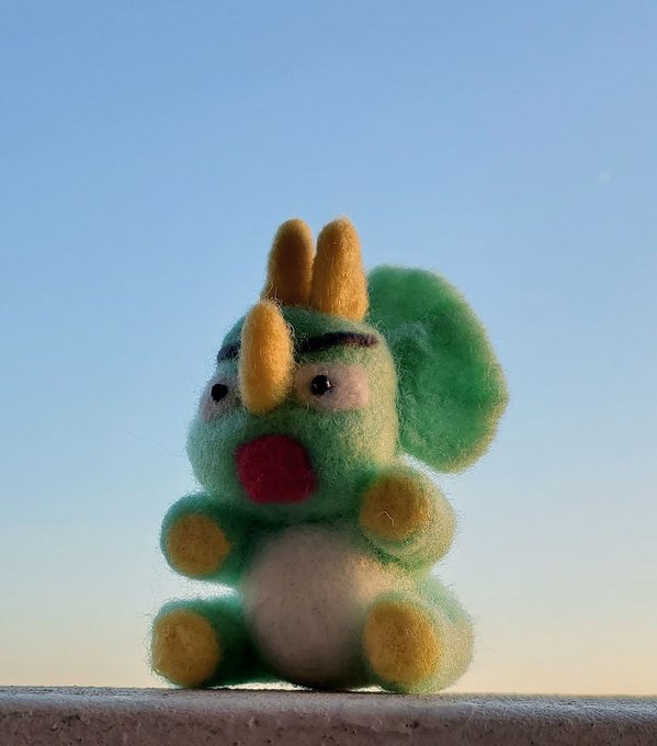 というわけで、本日は初代「いつものトリトリ」さよならツイートでございました😭 お疲れ様のご挨拶と共に、 ありがとう✨さようなら~❗❗🌈 (どこかで元気にやってるかな…✨) #トリトリと #恐竜ライフを楽しむ毎日 #企業公式ぬい撮り部 #羊毛フェルト #企業公式がお疲れ様を言い合 #初代