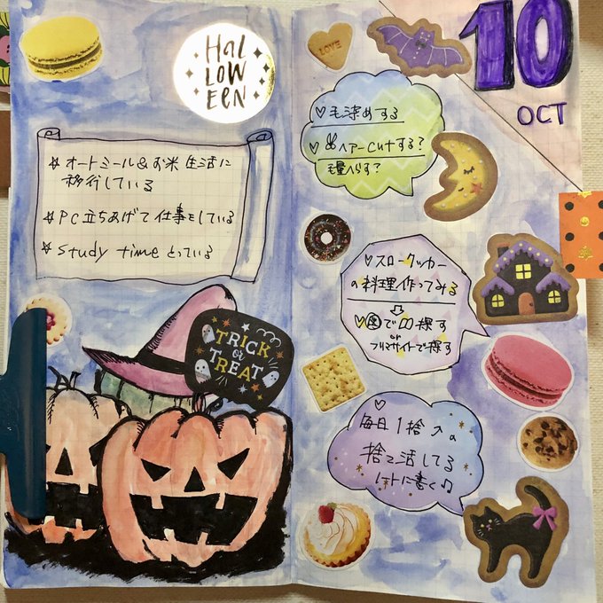 まだ10月にやること考えてるけど bujoの表紙は完成 とする #手帳ゆる友 #bujo #bujo表紙 #水彩イラスト #シール #カクリエ #カクリエプレミアムクロス