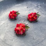 #拘りすぎて楽しくなっちゃった作品を紹介しよう リンゴ作ろうと思って最初は丸いリンゴを作ってたのに… いつの間にか花ひとつずつがリンゴで…集まってもリンゴで… で、出来上がったブローチ 【花果実 花林檎ブローチ】 ですかね🍎🍎🍎 リンゴの斑点も描きました🎨 粘土なので食べられません🙅♀️