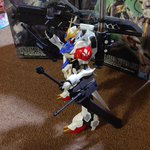 ユナイトソードとガトリングの塗装終わってポージング。取り敢えず担いでみた。次はレクスの改修に取りかかる。 #ガンプラ #ガンプラの画像貼るとRTされると聞いて #斜め後ろからの美学 #ガンプラはどんな自由な発想で作ってもいいんだ