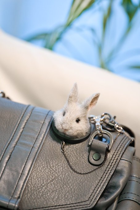 #新春芸術祭2023 素敵なタグお借りします🥰 バッグに付けてペットと一緒にお出かけ気分が味わえる「ひょっこりウサギ🐰」マグネットブローチです☺️ 羊毛フェルトの代わりに粘土とファーを使うファーリークレイ技法で作ってますのでリアルだけどフェルト化を気にせず触れますよ🐰まつ毛も付けたよ💕