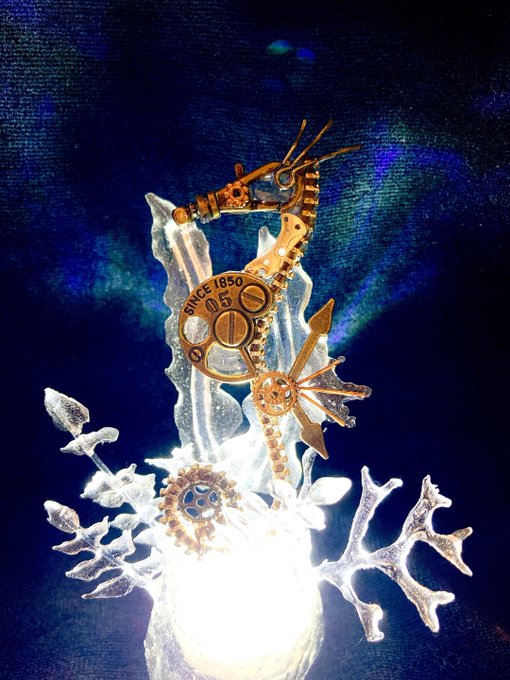 #新春芸術祭2023 レジンで歯車や廃部品、身近なもので新しい機械生物作っています。 楽しい!楽しい!と思いつくまま作っていたらあっという間に一年経っていました。 今年もどんどん新しい機械生物を作り出していこうと思います✨ 素敵なタグをありがとうございます😊