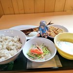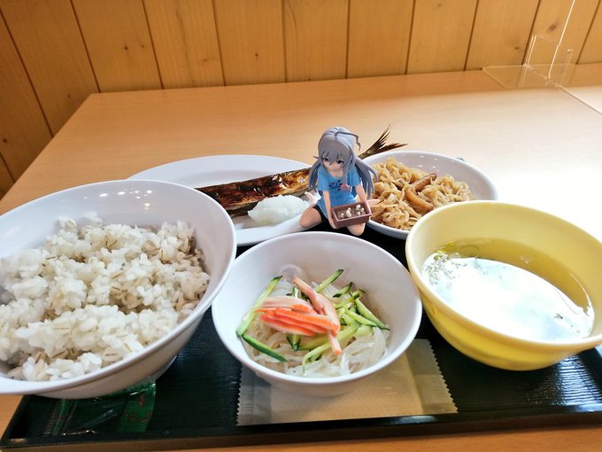 【シンデレラガールズ道東旅行】 お昼は網走監獄の食堂にて監獄食の体験メニューを頂きました。サンマの塩焼きと麦飯。質素な中にも有難みのある味… お土産のTシャツは監獄にまつわるものばかり(^^;) #星輝子 #フィギュア撮影友の会
