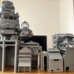 週間「浅草氏の塔を作る」その14 右側の住居塔はまだ4割程度。 鉄道模型ストラクチャー3階建て団地を6階に改装。 上層部はプラ板箱組みを重ね重ねて。 ガウディのカサミラとかがイメージなんだけど全然違うがこのまま進むます。 #映像研には手を出すな