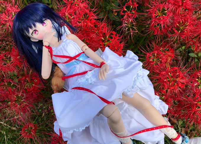 #杜野凛世「縛りんぜ…でございます」 #ドールと彼岸花 #ノードール・ノーライフ #今夜のドール撮影120分一本勝負 #うちのこに癒され24時間 #深夜のドール撮影素敵文1440分1本勝負 #シャニマスドール部 真上から撮ると彼岸花に見えない #ドール撮影の理想と現実 寝そべり専用スタンド 正式名:譜面台