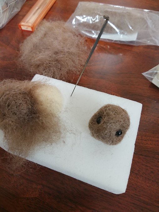 ラビハピさん(@Rabbit_made_)に納品予定の新作バッグチャームをチクチクしてます。 #うさぎ #羊毛フェルト #バッグチャーム #ハンドメイド #うさぎ好きさんと繋がりたい #ハンドメイド好きさんと繋がりたい #東広島 #ラビットハッピーメイド