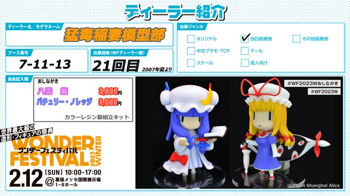 【告知】 2/12[日]のWF2023冬に参加予定です。 ・4-27-17 おとなの美術室 東方プロジェクト「メディスン・メランコリー」 1/6スケール(約23㎝)※1/5に近い? を販売予定です。 ボリューミーなスカートがかわいいです。 スーさんも(妖精)もいるよ。 #WF2023W #東方 #メディスン・メランコリー