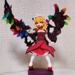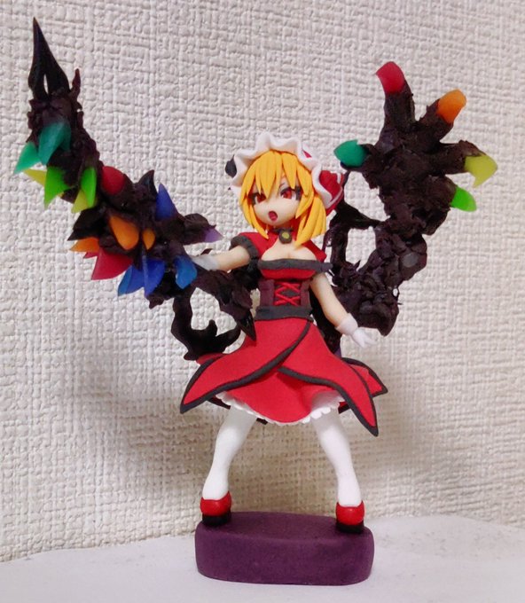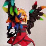 樹脂粘土でフランドール(重攻撃形態B)が完成。 背中の副腕とバキバキに生えた宝石結晶が、手にしたレーヴァテインを無理矢理巻き込むようにして剣(の形状をした鈍器)を形成している感じです。 #東方Project #フランドール・スカーレット