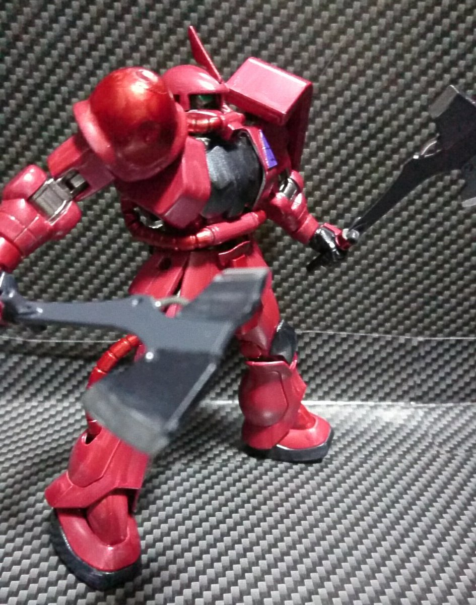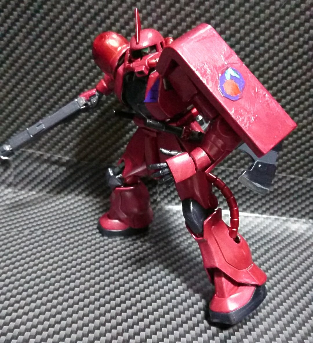 サユリ・マツムラ専用ザクⅡ 肩を左右反転 ショルダーアーマーのスパイクの削除 シールドにリンゴマーク 武装はショットガンとアックス #松村沙友理 #ガンプラはどんな自由な発想で作ってもいいんだ #乃木坂46