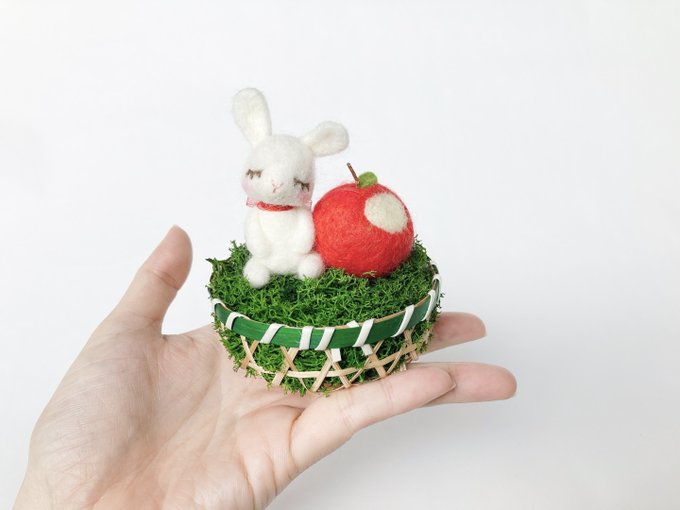 羊毛フェルト作品だけど、1年中飾れます。 毎日の小さなほっこりのお手伝いができますように^^* りんご大好きうさぎさん #羊毛フェルト 置物|ハンドメイド、クリエイター作品のマーケットプレイス #Creema creema.jp/item/11921497/… @Creema_jp #creemaで販売中 #needlefelt #うさぎ #りんご #林檎