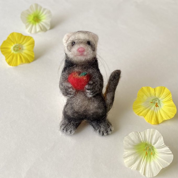 フェレットのブローチ ご購入いただきました🙏❤️ minne.com/items/28822667 🌻minne →minne.com/@teaplus #minne #羊毛フェルト #ミンネ #フェレット #ブローチ #ふぇれっと #minne_new #プレゼント #minne_fav #いたち #りんご #果物 #ハンドメイド #ハンドメイド好きさんと繋がりたい #イタチ