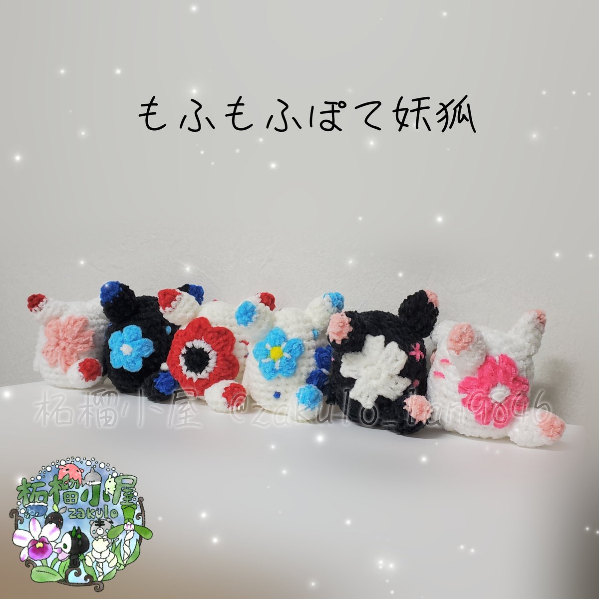 もふ(っ˙꒳˙c )もふ こんฅ^•ﻌ•^ฅこん もふもふぽて妖狐。 「花」たちです #柘榴小屋 #編み物 #あみぐるみ #ハンドメイド #創作 #あみぐるみが編みたくなる糸 #春の創作クラスタフォロー祭り