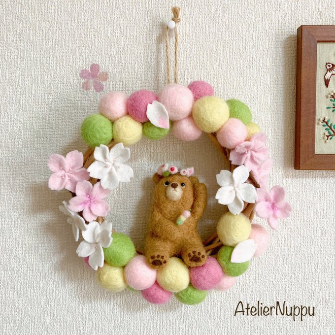 #桜の作品でTLにも桜を咲かせましょう ポカポカな日が続き、 ついに開花宣言されましたね🌸 Atelier Nuppuの桜のリースも見ていただけると嬉しいです❀.(*´◡`*)❀. #羊毛フェルト #ハンドメイド