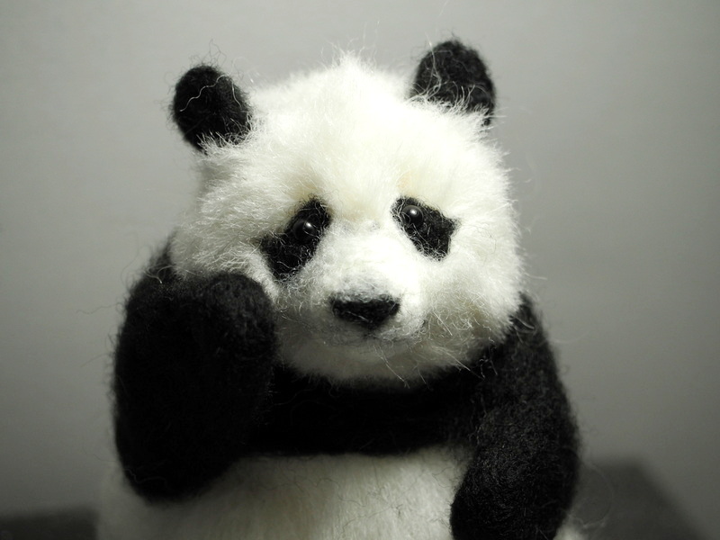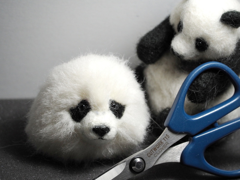気に入らないから植毛増やしてトリミング✂️ もうすぐ2歳だけどまだまだ子供ちゃんだもんね🐼💕 あどけない部分も残したいから難しい😅 #羊毛フェルト #楓浜 #パンダ #浜家 #ジャイアントパンダ #アドベンチャーワールド