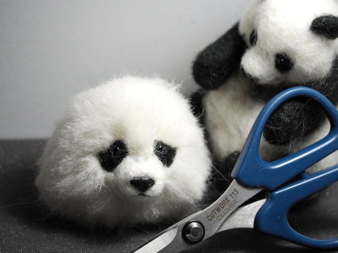 【メイキング】作品№101 #楓浜 つづき 朝早く起きたちびタン🐼☕🍌 もう作業始めていました😆 両腕をつけたあとお腹に長い毛を植毛。 顔面パーツの微調整 頭頂部にぴょこっと小さなモヒカン✂。 脚を仮止め。 つづく #羊毛フェルト #パンダ #アドベンチャーワールド twitter.com/YoshikoMoon4…