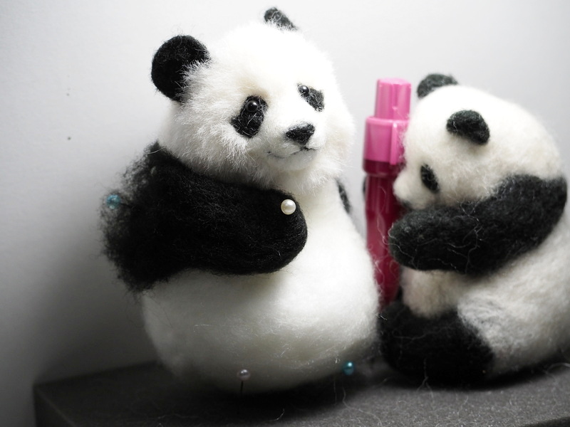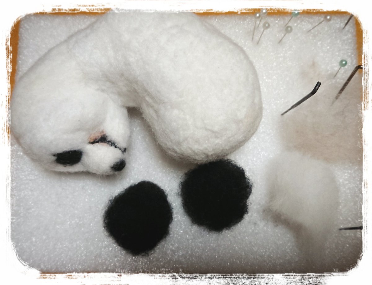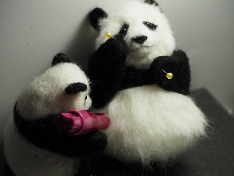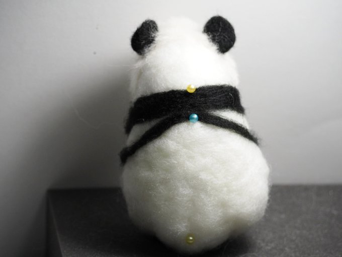 【メイキング】作品№101 #楓浜 つづき 背中の黒いラインを決める 腕を仮止めしていく ちびタン、がんばるっ! つづく #羊毛フェルト #パンダ #アドベンチャーワールド twitter.com/YoshikoMoon4…