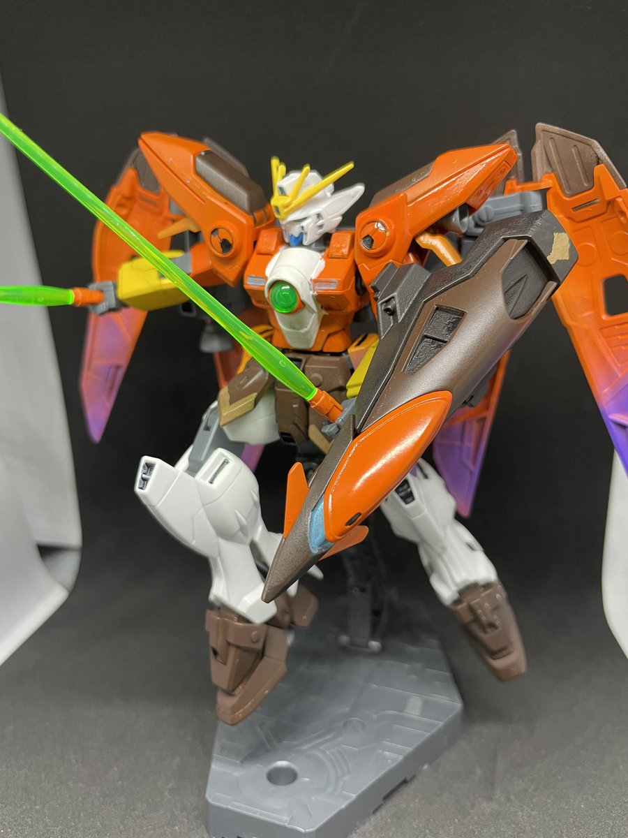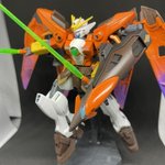 #橙里セイ誕祭2022 #セイッ画 画? セイちゃんお誕生日おめでとうございます。セイちゃんの今日よりの一年が幸福に満ちたものになるようお祈り申し上げます 未熟ながらセイちゃんをイメージしてHGACウィングガンダムゼロを塗装しました。 全体はオレンジに、翼はセイちゃんの羽根飾りをイメージして