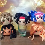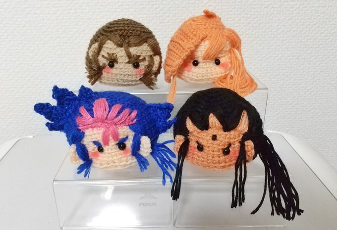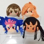 ジョルジュ、お誕生日おめでとう🌹🎂🎉 ということで、シャッフル同盟の4人を新たに編みました。♥️♦️♣️♠️ この4人はまゆげが特徴的なので、髪と同色の糸でまゆげをつけました。カワイイ(*´ω`*) 集合写真も、賑やかに!👊✨ #ジョルジュ・ド・サンド生誕祭2021 #機動武闘伝Gガンダム #Gガンダム