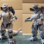 #多分私しかやってない 絶賛の評価の多いアオシマのプラモデル機龍を徹底改修してスマートなアレンジを排除、柔和顔でマッチョな撮影用スーツのプロポーションを再現しました! #機龍 #メカゴジラ #アオシマ twitter.com/i/events/14586…
