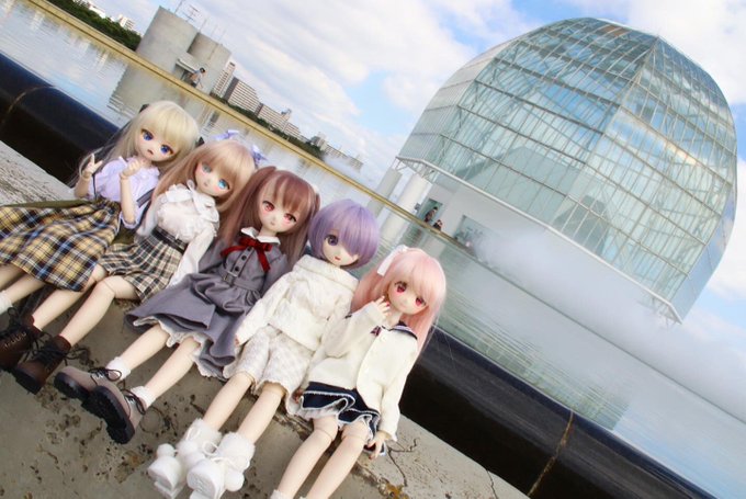 葛西臨海公園水族館の入口で記念撮影😆✨ガラス張りの建物と、噴水が綺麗です⛲️海の向こうには東京ディズニーランドが見えました🎡😆✨ #もこもかっこ #THユカリnail #MDDはいいぞ #p_house #ぷちりぼん #missantroop #葛西臨海公園 #水族館