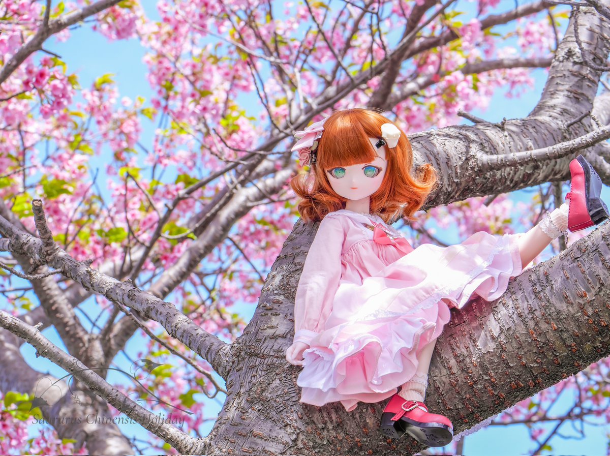 おはようございます(*‘ω‘ *) また最近冬に逆戻りして、体調を崩しがちになってしまいますね 暖かいあの日をもう一度…( ˘ω˘) 次の桜は週末辺りかな #おはドル #うちのこかわいい #河津桜 #お花見 #RosenliaDoll #SaururusChinensisHoliday