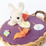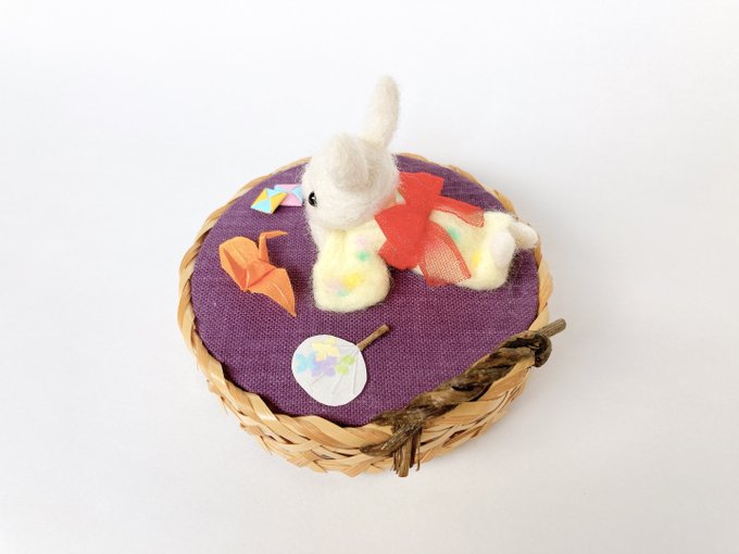 団扇は 骨組みが見える?浮き出てるイメージなので。 ワイヤーを仕込んで骨組みが浮き出てるように作成しました。 Aki Ako'S GALLERYさんのなにしてあそぼうかな? #浴衣 #うさぎ さん #羊毛フェルト 置物 minne.com/items/32645438 #minne #minne_new #minneで販売中 #needlefelt