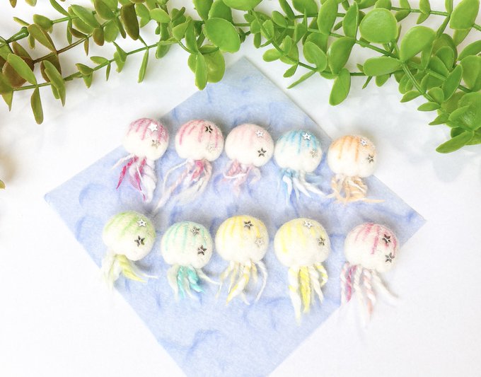 羊毛フェルトブローチの販売はじめました^^* 春、夏に羊毛はちょっと( ; ; )かもですが 意外とカゴバッグなどにも似合うと思います。 ゆらゆら漂う 星クラゲ #羊毛フェルト ブローチ #Creema creema.jp/item/13831348/… @Creema_jp #creemaで販売中 #クラゲ #クラゲブローチ #海月 #needlefelt