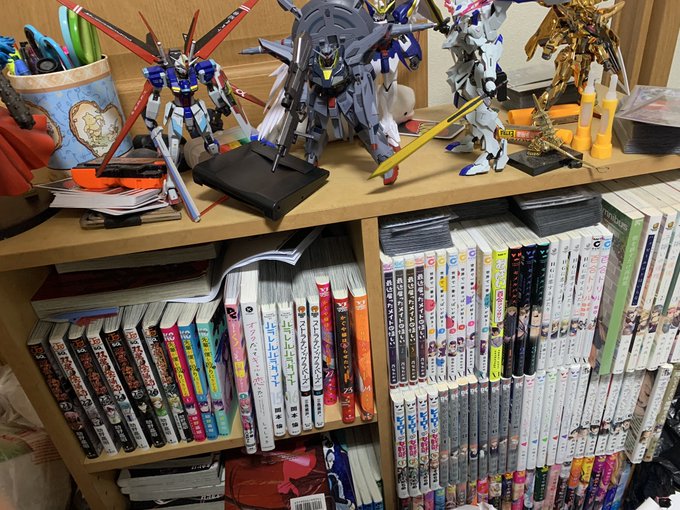 #ガンプラ #ガンプラ好きな人と繋がりたい #ガンプラの画像を貼るとRTされると聞いて #漫画好きな人と繋がりたい #百合漫画 ここら辺ちゃんと整理すればまだ置けるかな。 そろそろ漫画もガンプラも置ける場所が厳しくなってきたぞ。