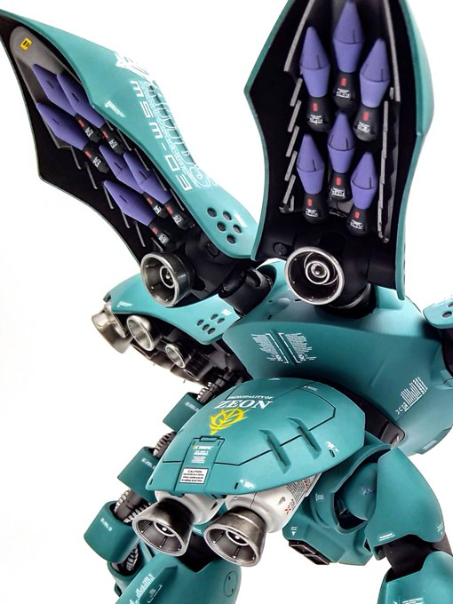 ハンブラビはBクラブガレキ。羽は没案で富野監督にお会いした時にサインを入れて頂きました。νガンダムはC3で販売させて頂いた物です。Ver.Kaよりも先にサイコフレームを搭載(笑)他各部にパク王より先に360度モニター用カメラ、センサーを僕の発案で盛り込んでいます。 #無言で後ろ姿を見せつけよ