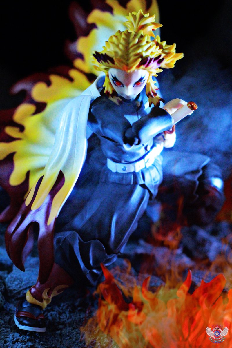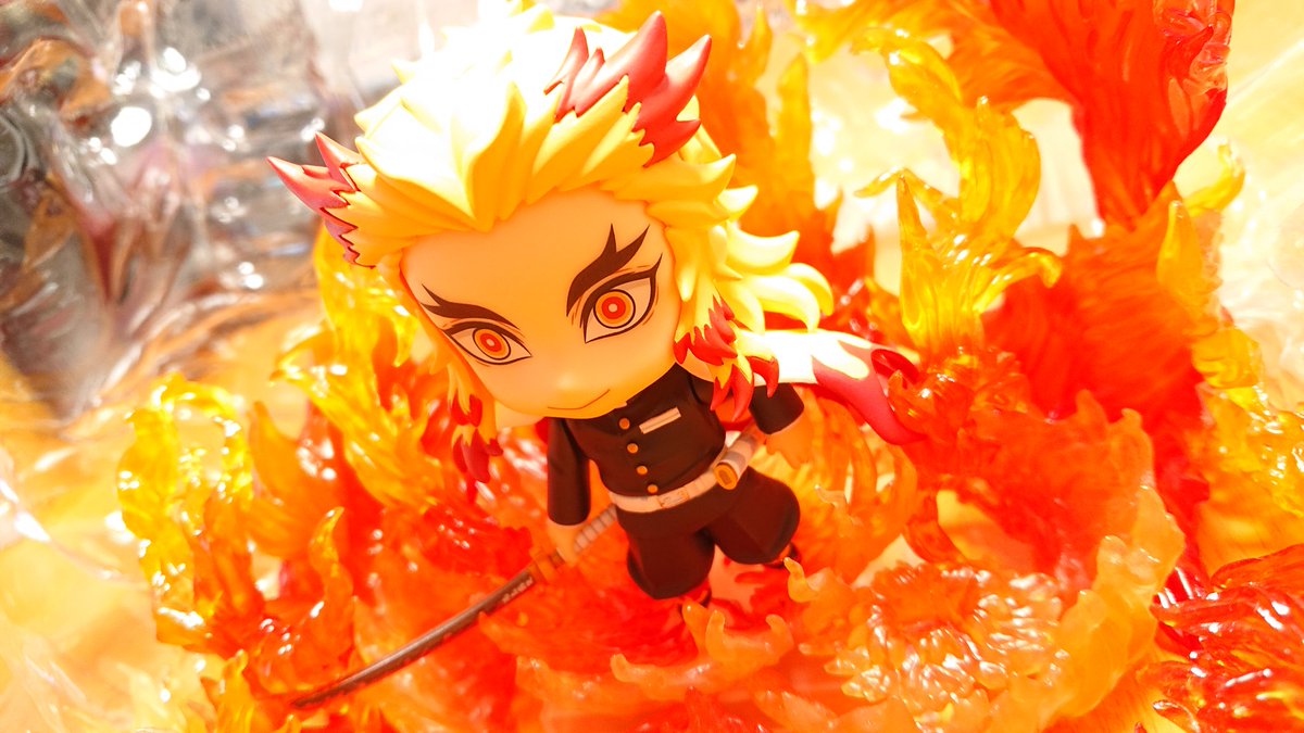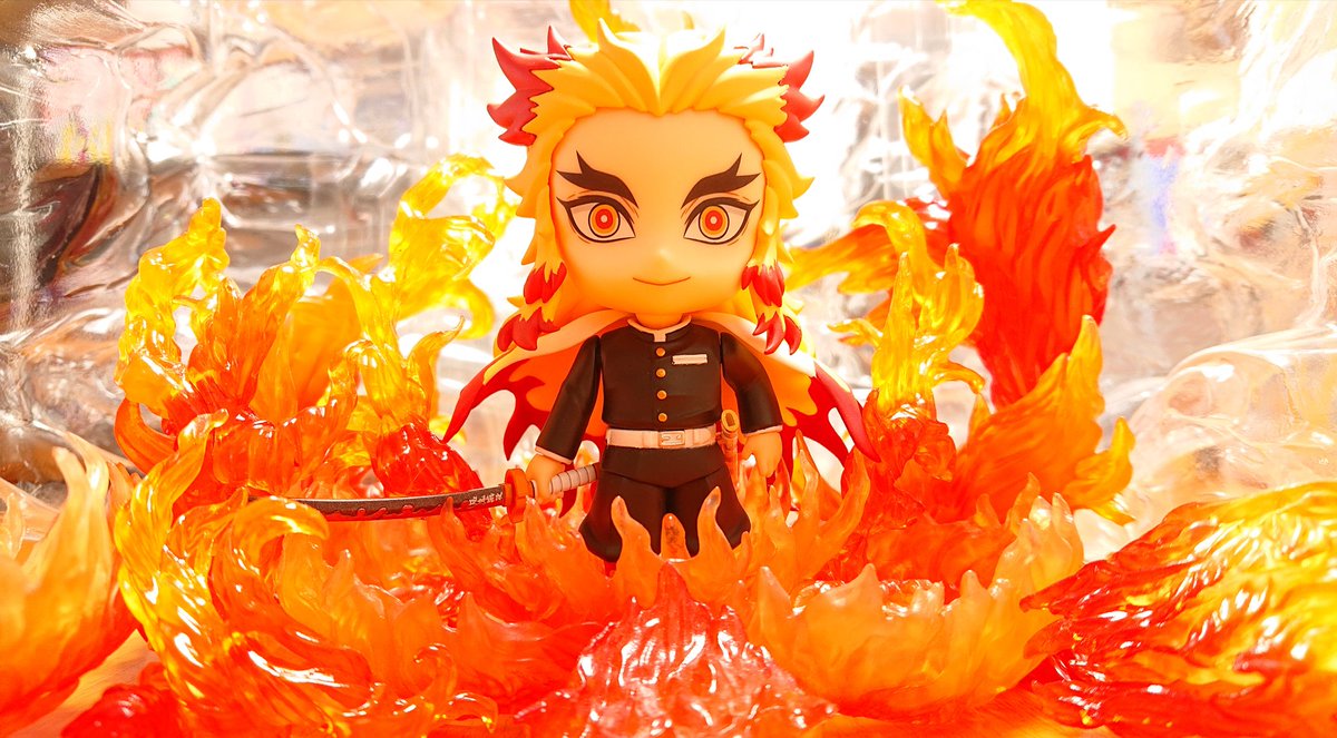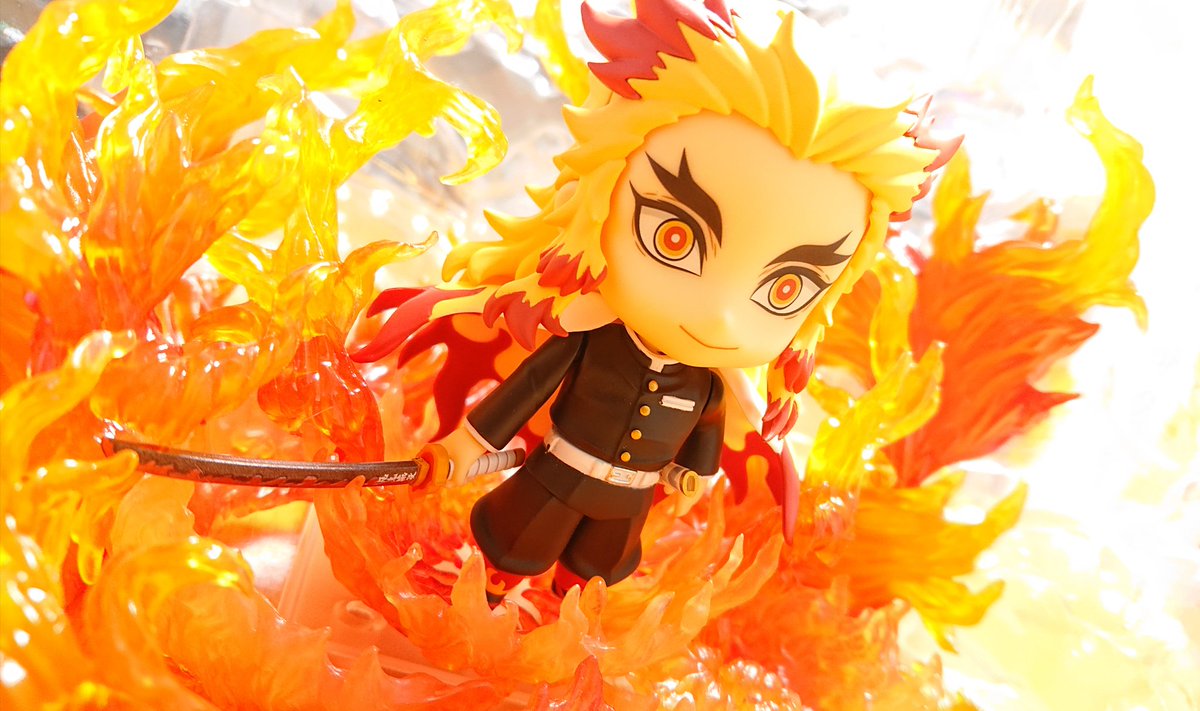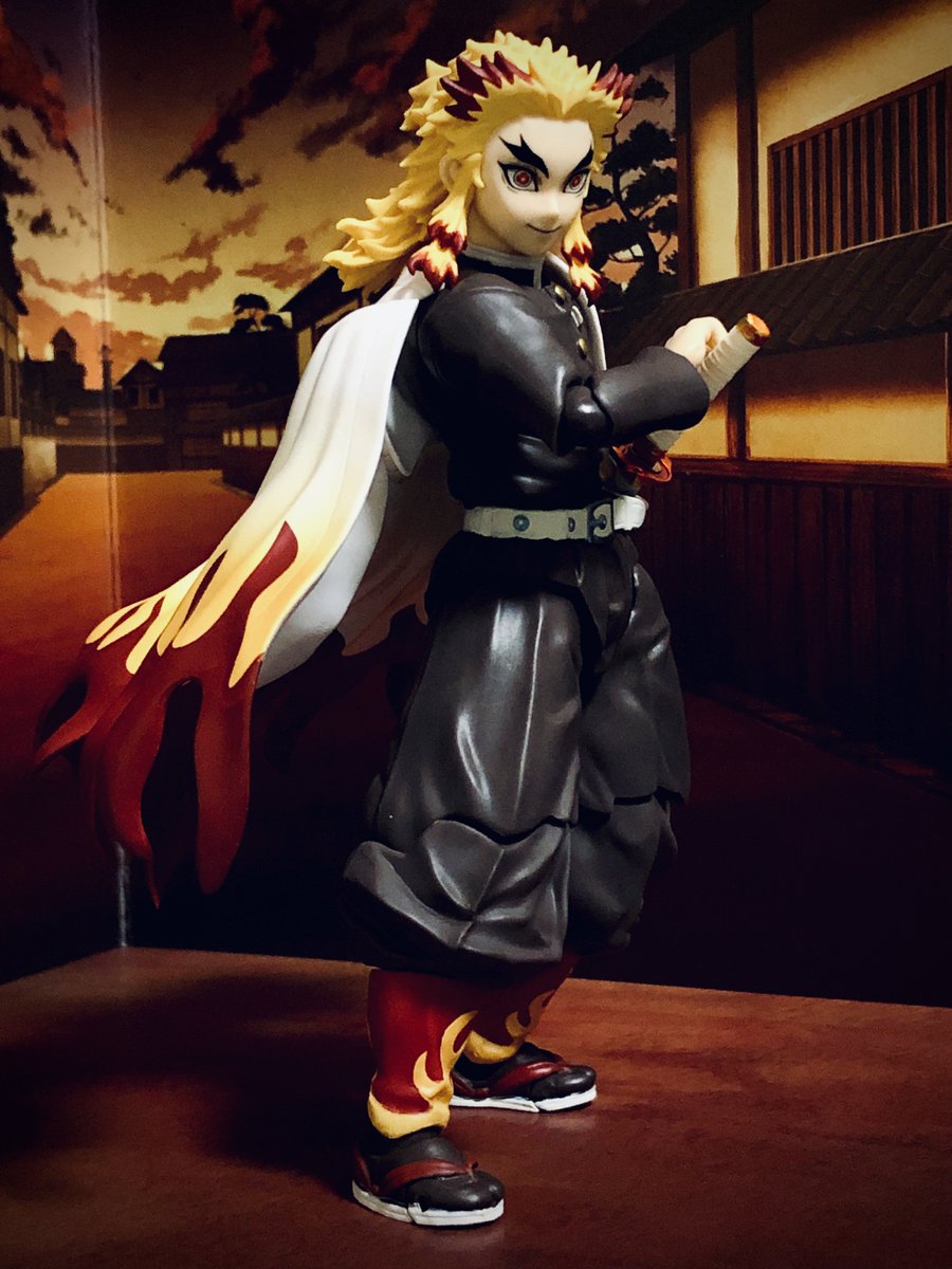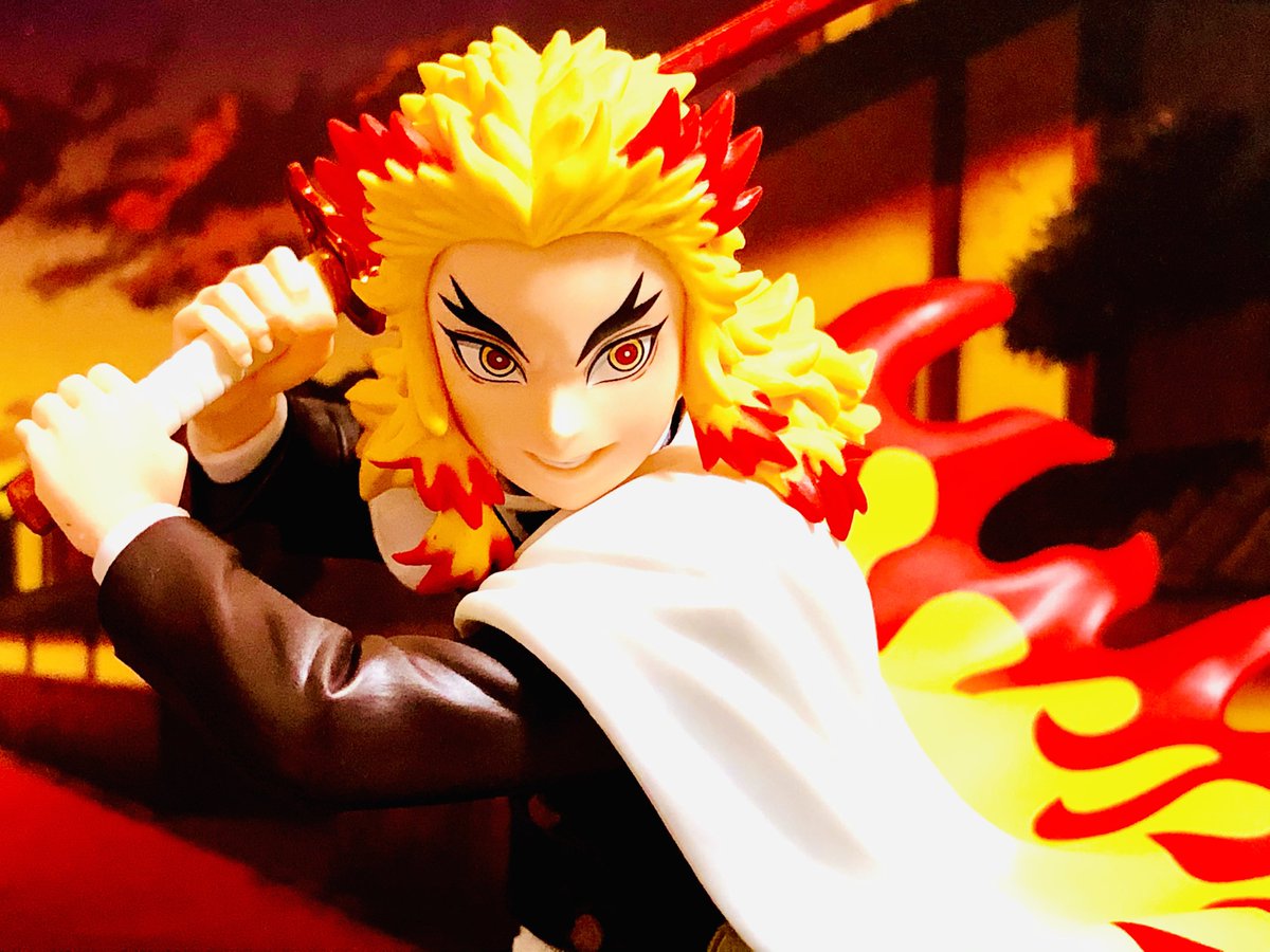 #夜のフィギュア撮影会 4/26 お題『日本のキャラ』 罪なき人に牙を剥こうものならば!この煉獄の赫き炎が!お前を骨まで焼き尽くす!! #オモ写 #鬼滅の刃 #煉獄杏寿郎 #煉獄さん #ねんどろいど #こんばんは煉獄さん