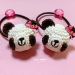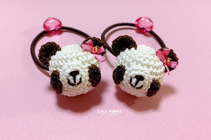 今回のパンダちゃんは、こちらのバージョンで❤️ この後、真っ赤なリボンでおめかししますよ〜🎀 minne.com/items/12284544 #あみぐるみ #あみぐるみヘアゴム #かぎ針編み #パンダ #熊猫