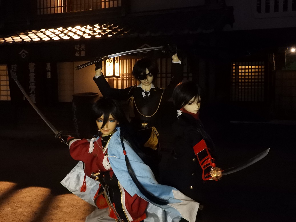 今夜のお題【 かっこいいポーズ 】」「過去」 #今夜のドール撮影120分一本勝負 #刀剣乱舞 #とうらぶキャラド #燭台切光忠 #和泉守兼定 #加州清光 #遡行軍(なんちゃって薙刀) #銘犬吉(日本刀) #puppenheimcraft(薙刀)